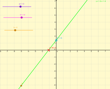 Day 1: Create a linear function controlled by sliders for slope and initial value & make sure the graph matches with your own knowledge of the linear function (ie increases for a > 0, flat for a = 0, etc)